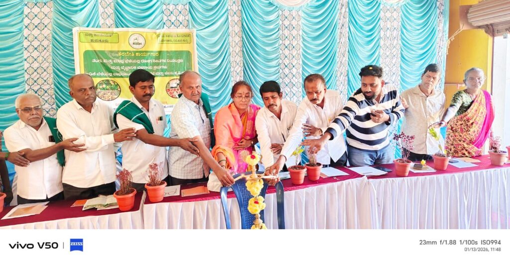 ತಾಲ್ಲೂಕಿನ ಹೊಸಕೆರೆ ಶ್ರೀಲಕ್ಷ್ಮಿರಂಗನಾಥಸ್ವಾಮಿ ಸಮುದಾಯ ಭವನದಲ್ಲಿ ಮಂಗಳವಾರ ತೋಟಗಾರಿಕಾ ಇಲಾಖೆಯಿಂದ ಆಯೋಜಿಸಿದ್ದ ತೆಂಗು ಮತ್ತು ಮಾವು ಬೆಳೆಯಲ್ಲಿ ರೋಗ, ಕೀಟಗಳ ನಿಯಂತ್ರಣ ಮತ್ತು ವೈಜ್ಞಾನಿಕ ಬೇಸಾಯ ಕ್ರಮಗಳು, ಹಾಗೂ ಜೇನು ಕೃಷಿ ಕಾರ್ಯಗಾರವನ್ನು ಉದ್ಘಾಟಿಸಿ ಮಾತನಾಡಿದ ಅವರುಅಡಿಕೆ ಮಾನವನಿಗೆ ಅವಶ್ಯವಾದ ಆಹಾರವಲ್ಲ, ಅದ್ದರಿಂದ ಅಡಿಕೆಯಲ್ಲಿ ಅಂತರ ಬೆಳೆಗಳಾಗಿ ಕೊಕೊ, ಪಪ್ಪಾಯಿ, ನುಗ್ಗೆ, ಮೆಣಸು ಮುಂತಾದ ಬೆಳೆಗಳನ್ನ ಬೆಳೆದು ಆದಾಯವನ್ನು ಗಳಿಸಿಕೊಳ್ಳಭೇಕು ಎಂದು ಹೇಳಿದರು.