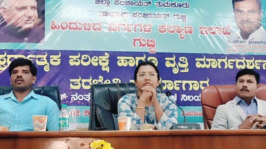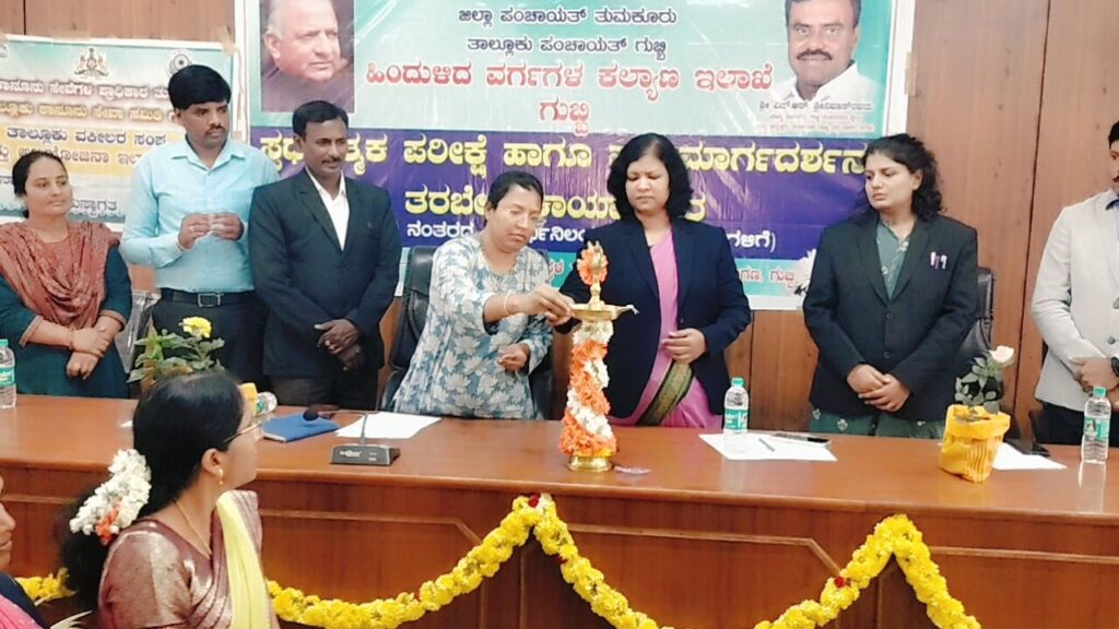 ಪಟ್ಟಣದ ತಾಲೂಕು ಪಂಚಾಯಿತಿ ಸಭಾಂಗಣದಲ್ಲಿ ಹಿಂದುಳಿದ ವರ್ಗಗಳ ಕಲ್ಯಾಣ ಇಲಾಖೆ, ತಾಲೂಕು ಕಚೇರಿ, ಪಟ್ಟಣ ಪಂಚಾಯಿತಿ, ತಾಲೂಕು ವಕೀಲರ ಸಂಘ, ತಾಲೂಕು ಕಾನೂನು ಸೇವಾ ಸಮಿತಿ ಹಾಗೂ ಅಭಿಯೋಜಕರ ಇಲಾಖೆ ವತಿಯಿಂದ ಏರ್ಪಡಿಸಿದ್ದ ಸ್ಪರ್ಧಾತ್ಮಕ ಪರೀಕ್ಷೆ ಹಾಗೂ ವೃತ್ತಿ ಮಾರ್ಗದರ್ಶನ ತರಬೇತಿ ಕಾರ್ಯಗಾರಕ್ಕೆ ಚಾಲನೆ ನೀಡಿ ಮಾತನಾಡಿದ ಅವರು, ಪಿಯುಸಿ ಹಂತದಲ್ಲಿ ವಿದ್ಯಾರ್ಥಿಗಳು ಮನಸ್ಸನ್ನು ಹಿಡಿತದಲ್ಲಿ ಇಟ್ಟುಕೊಂಡು ಯಾವುದೇ ದುಶ್ಚಟಗಳಿಗೆ ಬಲಿಯಾಗದೆ ನಿರಂತರ ಅಭ್ಯಾಸದಲ್ಲಿ ತೊಡಗಿದಾಗ ಸಮಾಜದಲ್ಲಿ ಜವಾಬ್ದಾರಿಯುತ ವ್ಯಕ್ತಿಯಾಗಬಹುದು. ಹೆಣ್ಣು ಮಕ್ಕಳು ತಾಳ್ಮೆಯಿಂದ ಹಿರಿಯರ ಮಾರ್ಗದರ್ಶನ ಪಡೆದು ವಿದ್ಯಾಭ್ಯಾಸ ಮಾಡಿ ಗುರಿ ಸಾಧನೆಯತ್ತ ಹೆಜ್ಜೆ ಇಡಬೇಕು.