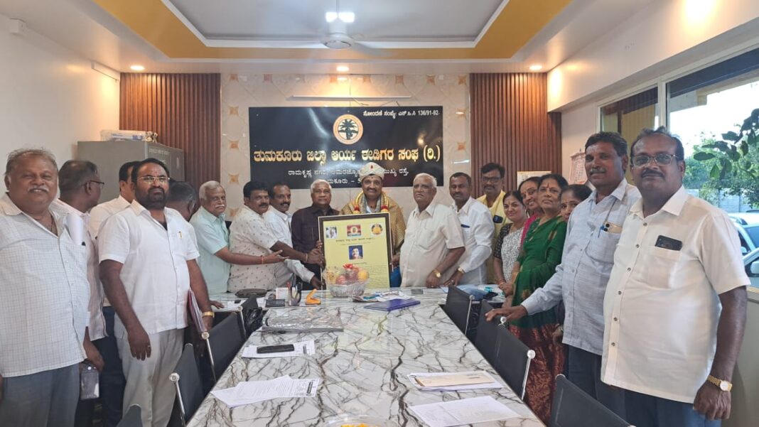 ತುಮಕೂರು: ಬೆಂಗಳೂರು ವಿಭಾಗೀಯ ರೈಲ್ವೆ ಮಂಡಳಿ ನಿರ್ದೇಶಕರಾಗಿ ಇತ್ತೀಚೆಗೆ ನೇಮಕವಾದ ಜಿಲ್ಲಾ ಆರ್ಯ ಈಡಿಗರ ಸಂಘದ ಪ್ರಧಾನ ಕಾರ್ಯದರ್ಶಿ ಜೆ.ಪಿ.ಮಲ್ಲಸಂದ್ರ ಶಿವಣ್ಣ ಅವರನ್ನು ಜಿಲ್ಲಾ ಸಂಘದ ಮುಖಂಡರು ಅಭಿನಂದಿಸಿ ಶುಭಕೋರಿದರು.