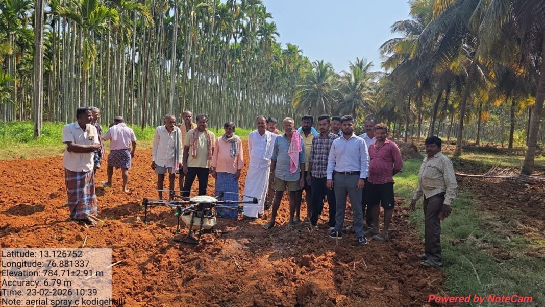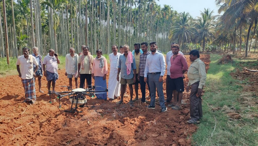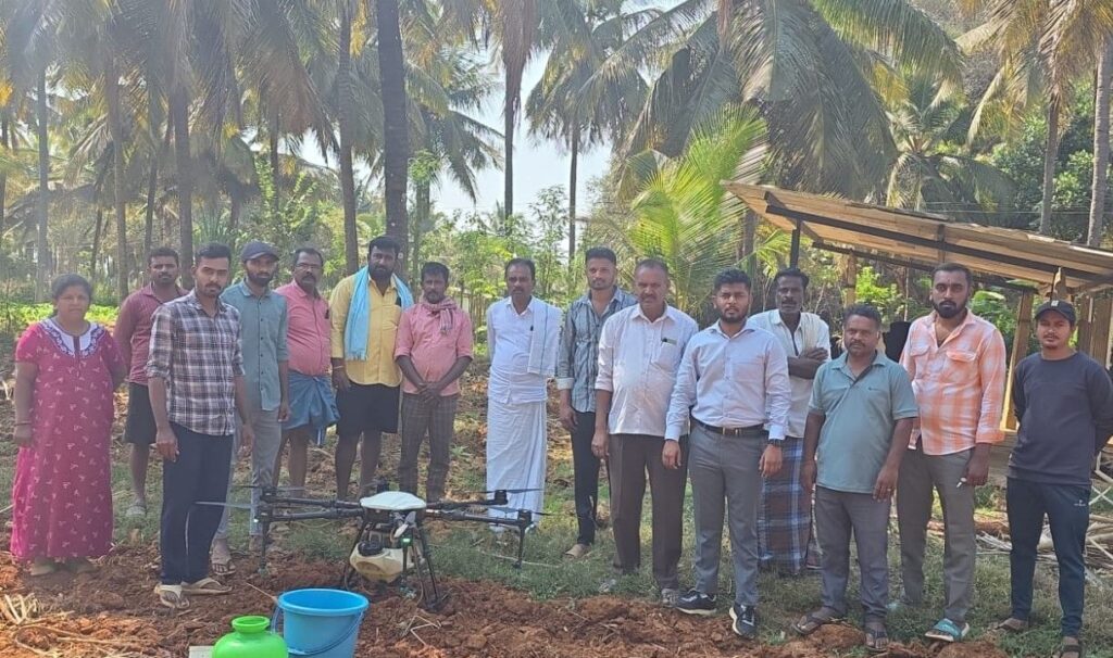 ರೈತ ಮುಖಂಡ ಕೆಂಪರಾಜು ಮಾತನಾಡಿ, ತೆಂಗಿನ ಮರಗಳು ಎತ್ತರವಾಗಿ ಬೆಳೆಯುವುದರಿಂದ ಡ್ರೋಣ್ ಮೂಲಕ ನೆತ್ತಿಯ ಮೇಲಿಂದ ಬೇವಿನ ಎಣ್ಣೆಯನ್ನು ಸಿಂಪಡಿಸಿದಾಗ ನುಸಿರೋಗ, ವೈಟ್ ಫ್ಲೈ, ಶಿಲೀಂದ್ರಗಳ ಕಾಟಗಳನ್ನು ತಡೆಗಟ್ಟಬಹುದು ಇದು ರೈತರಿಗೆ ಅನುಕೂಲಕಾರಿಯಾಗಿದೆ ಎಂದರು.